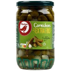 Cornichons extra-fins au vinaigre pasteurisés aromatisés.