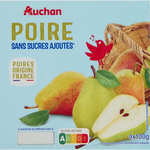 Coupelles de purée de poire sans sucres ajoutés
