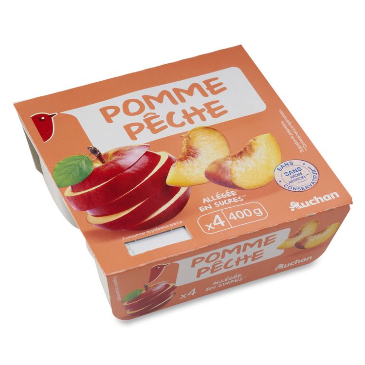 Coupelles pomme pêche allégé en sucres sans conservateur