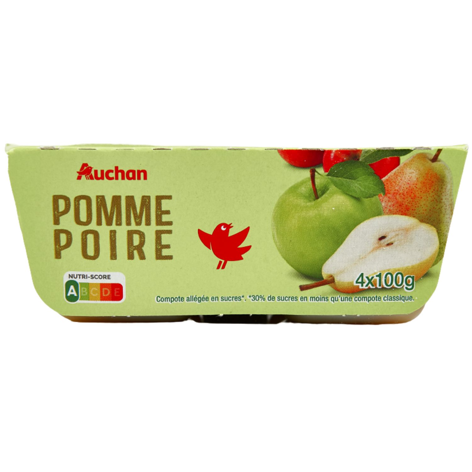 Compote de pommes poires allégée en sucres ** 30 % de sucre en moins qu'une compote classique.