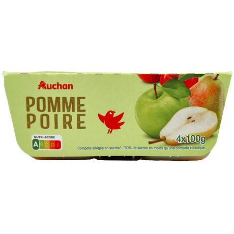 Compote de pommes poires allégée en sucres (30% de sucres en moins qu'une compote classique)