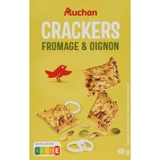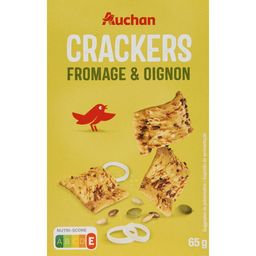 Ingrédients : Farine de BLÉ, fromage Gouda (LAIT) 19,7%, beurre (LAIT) 10%, sirop de glucose, huile de tournesol, oignons séché 3,7%, poudre de oignon 2,1%, levure, amidon de pomme de terre, sel de mer, graines nigelle, arôme naturel d'oignon, poivre blanc, livèche séchée, protéines de LAIT, antioxydant: extrait de romarin, dextrose. Traces éventuelles de sésame Elaboré à partir de lait origine UE