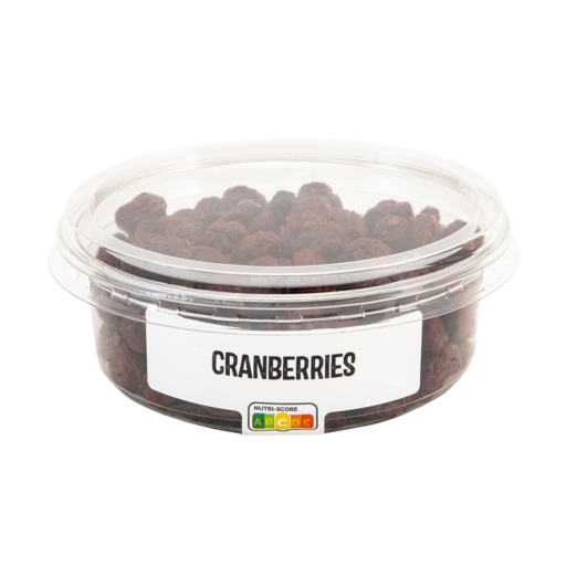 Canneberges séchées, sucre 39%, huile de tournesol.