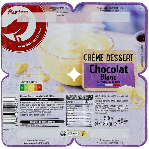 Bonjour Mama, Merci pour votre commentaire. Dommage que votre note ne reflète pas votre avis sur nos crèmes dessert Auchan chocolat blanc. Belle journée Marine