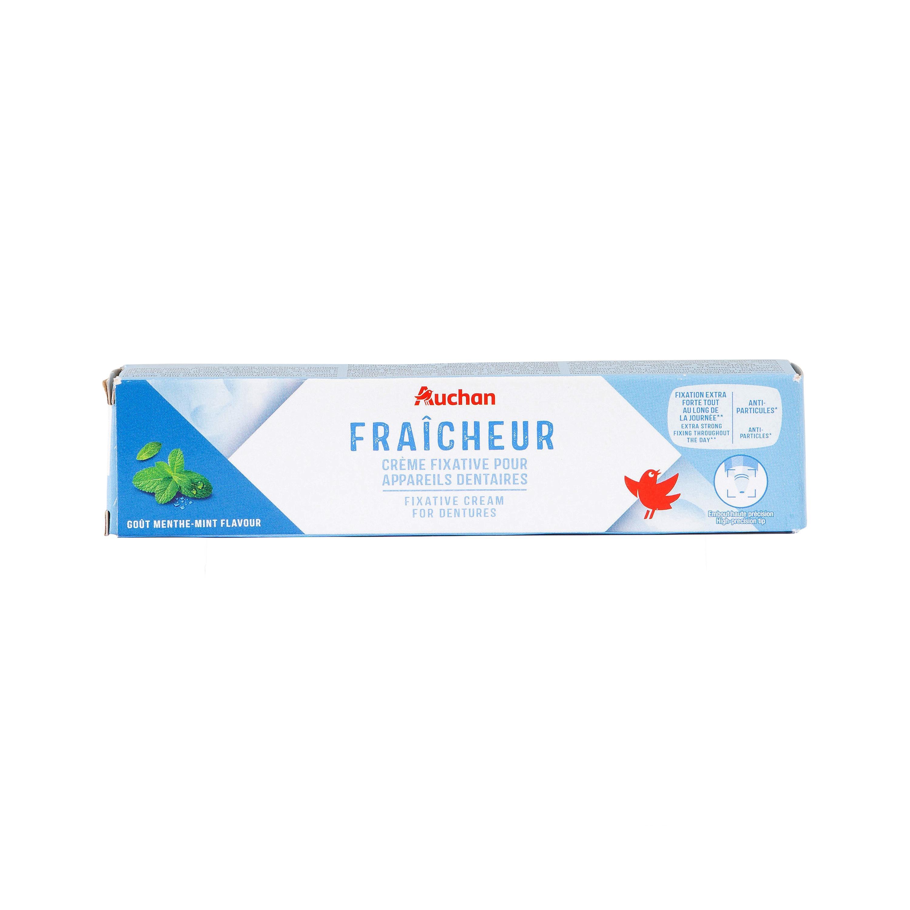 " Goût menthe "."Fraîcheur""Fixation extra forte tout au long de la journée" "Anti-particules" "Embout haute précision ""Bonne résistance aux aliments chauds ""Contribue à éviter l'insertion de particules alimentaires entre l'appareil et la gencive"
