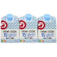 Une crème, à base de lait collecté en France, conditionnée en France, fluide, légère avec 15% de matières grasses, en briquettes 3x20cl