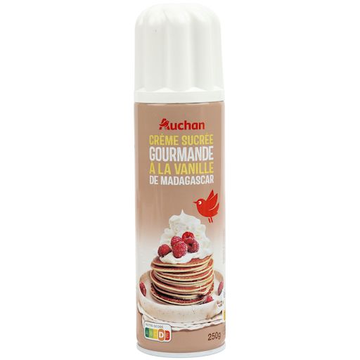 J'ai mis une seule étoile, pas pour la crème qui est excellente qui elle mérite 5 étoiles ! mais pour ce bouton poussoir qui est une horreur à utiliser, je pensais que Auchan avait une équipe de testeurs pour leurs produits, mais là ils ont juste goûté la crème sans essayer la gâchette de la bombe et ça vaut pour toutes les autres déclinaison de produit de ce style de la marque, pitié changé ce maudit procédé vous en vendrez certainement beaucoup plus, surtout que le prix du produit est très intéressant.