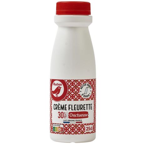 Une crème, à base de lait collecté en France, conditionnée en France, fluide, entière avec 30% de matières grasses, dans une petite bouteille 25cl