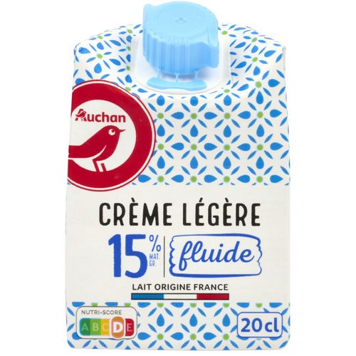 Une crème, à base de lait collecté en France, conditionnée en France, fluide, légère avec 15% de matières grasses, en briquette 20cl