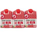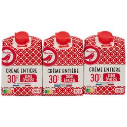Une crème, à base de lait collecté en France, conditionnée en France, semi-épaisse, entière avec 30% de matières grasses, en briquettes 3x20cl