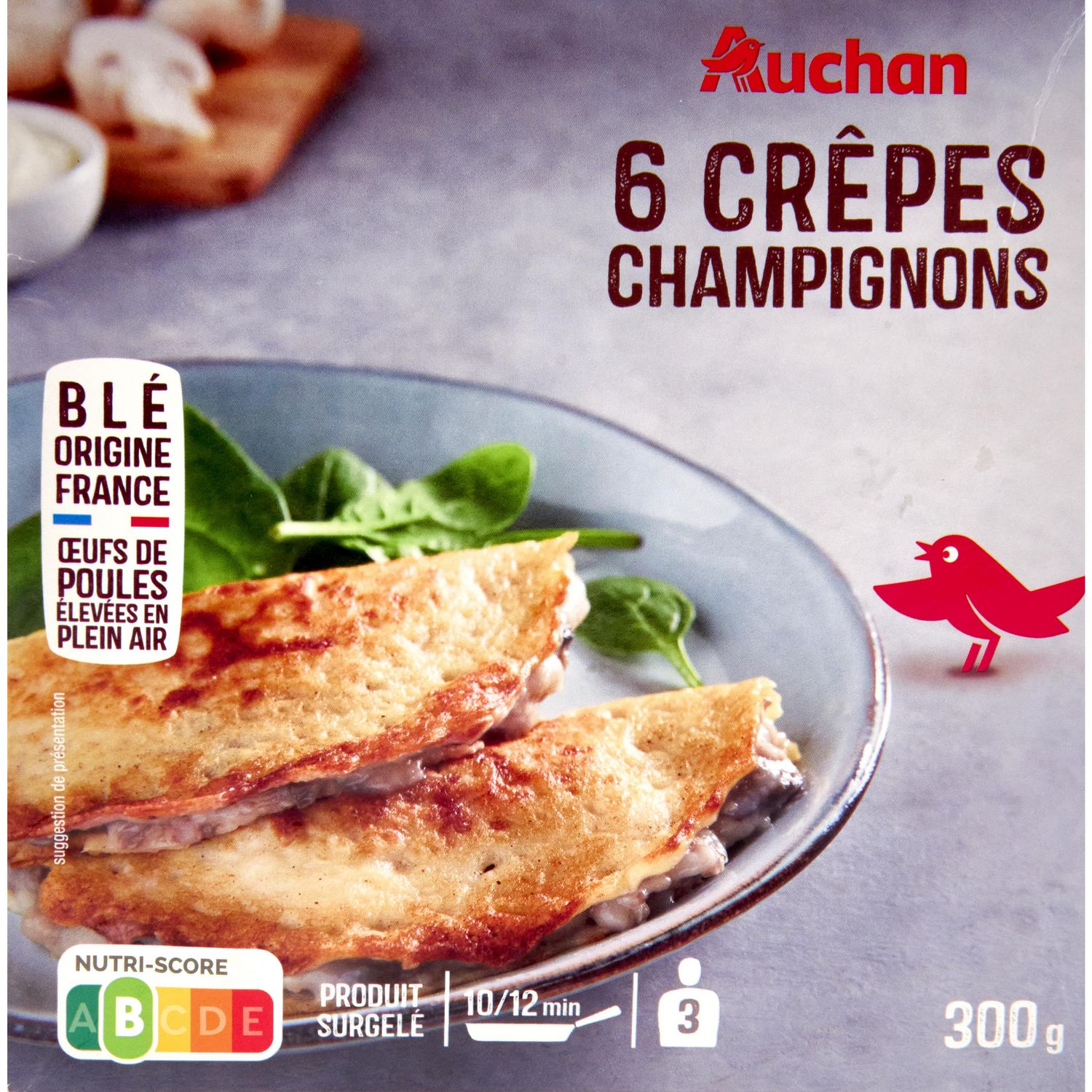 Crêpes (45%) garnies d'une préparation aux champignons, surgelées