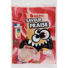 8 crêpes saveur fraise, emballées individuellement pour le goûter des petits et des grands