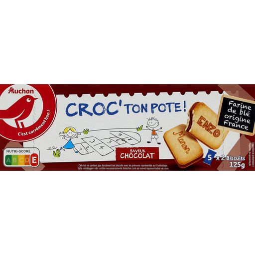 Le biscuit Croc ton pote chocolat existe aussi en parfum fraise. De nouveaux prénoms sont à découvrir. Grâce à ses sachets fraicheurs, il se glisse facilement dans les cartables de vos enfants. Un produit CO-CONSTRUIT avec nos consommateurs!