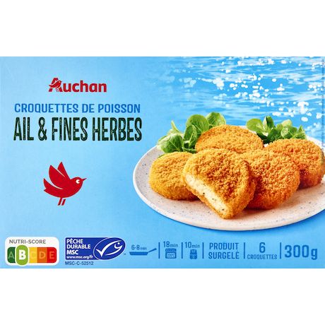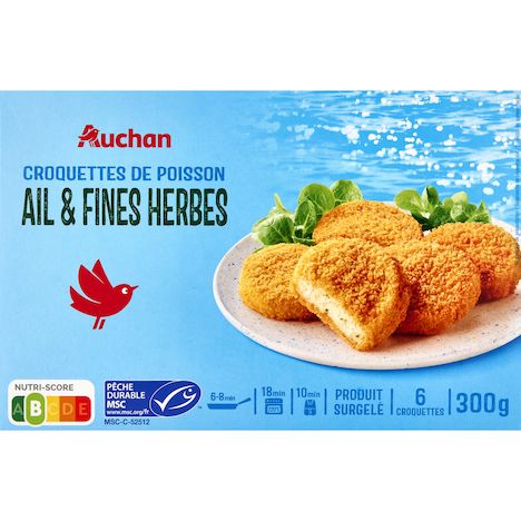 AUCHAN CROQUETTES DE POISSON AIL ET FINES HERBES X6 300G