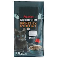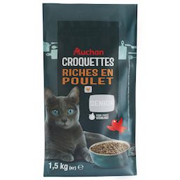 :Pour un chat adulte en activité normale, donner les quantités recommandées ci-contre, à heures régulières. Ces recommandations sont données à titre indicatif : elles peuvent varier en fonction de la race, du poids, de l'âge et de l'activité de votre animal. Pour que votre chat s'habitue à sa nouvelle alimentation, sur les plans gustatif et digestif, toute modification alimentaire doit se faire progressivement, sur une semaine environ en mélangeant l’ancien aliment au nouveau. Laisser en permanence un bol d'eau fraîche quotidiennement renouvelé à disposition de votre animal.Ration journalière (en g/j) :Poids du chat (Kg) : 2.5 - 3 - 3.5 - 4 - 5 - 6 - 8* Chat stérilisé accès extérieur : 50 - 55 - 60 - 65 - 80 - 90 - 105Mix feeding : 30 - 25 - 25 - 25 - 35 - 40 - 45Nombre de pochons : 1 - 1.5 - 2 - 2 - 2 - 2 - 3* Chat stérilisé vivant à l'intérieur : 45 - 50 - 55 - 60 - 70 - 80 - 95Mix feeding : 25 - 30 - 30 - 30- 30 - 40 - 45Nombre de pochons : 1 - 1 - 1.5 - 1.5 - 2 - 2 - 2.5Le pochon de référence est celui de la gamme Auchan "Effilés en sauce"