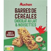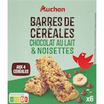 Barres céréalières aux pépites de chocolat au lait, éclats de noisette et talon de chocolat au lait, aromatisées