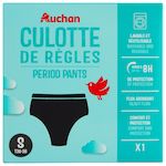 "Confort et protection Lavable et réutilisable jusqu'à 50 lavagesTestée sous contrôle dermatologiqueContrôle des odeursJusqu'à 8h de protectionAbsorbe l'équivalent de 3 tampons""Comment ça marche ? Protection multi couches - Tissu en contact avec la peau doux - Double coeur absorbant- Tissu imperméableLe tout assemblé par des coutures spéciales protégeant des fuites""Equivalence tour de hanches :S : 89-93 cmM : 94-98 cmL : 99-103 cm"Dépliez la boîte pour retrouver toutes les informations concernant l'utilisation et l'entretien de votre culotte de règles