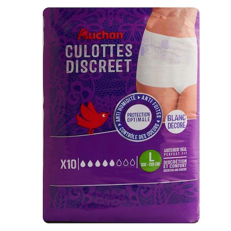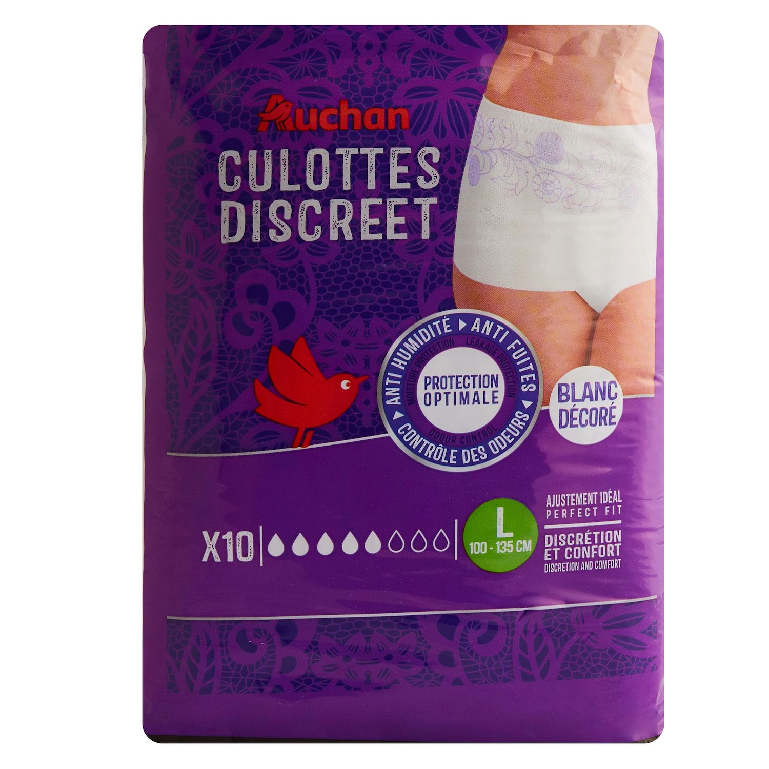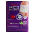 Culotte Discreet Taille LTriple protection : contrôle des odeurs, protection anti-fuites, protection contre l'humiditéAvec leur touche féminine, ces culottes discreet vous apportent protection, confort et discrétion. Elles s'adaptent parfaitement à votre morphologie et sont testées dermatologiquement.Voile de surface ultra doux Canal d'absorption et corps absorbantDouble barrière anti-fuites