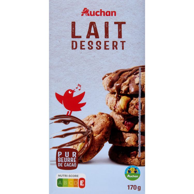 Tablette de chocolat au lait pâtissier Auchan, fabriquée en France.