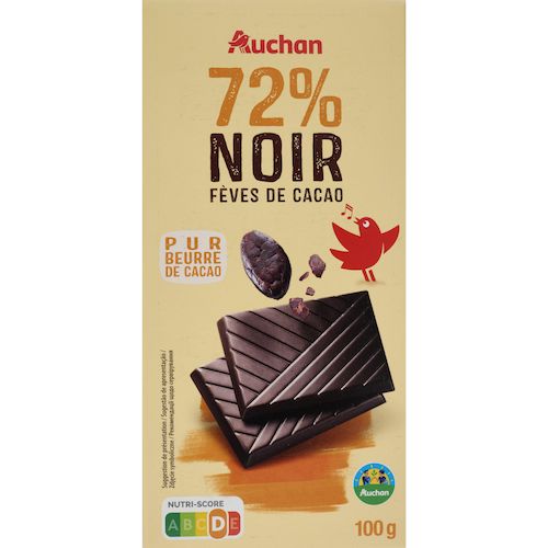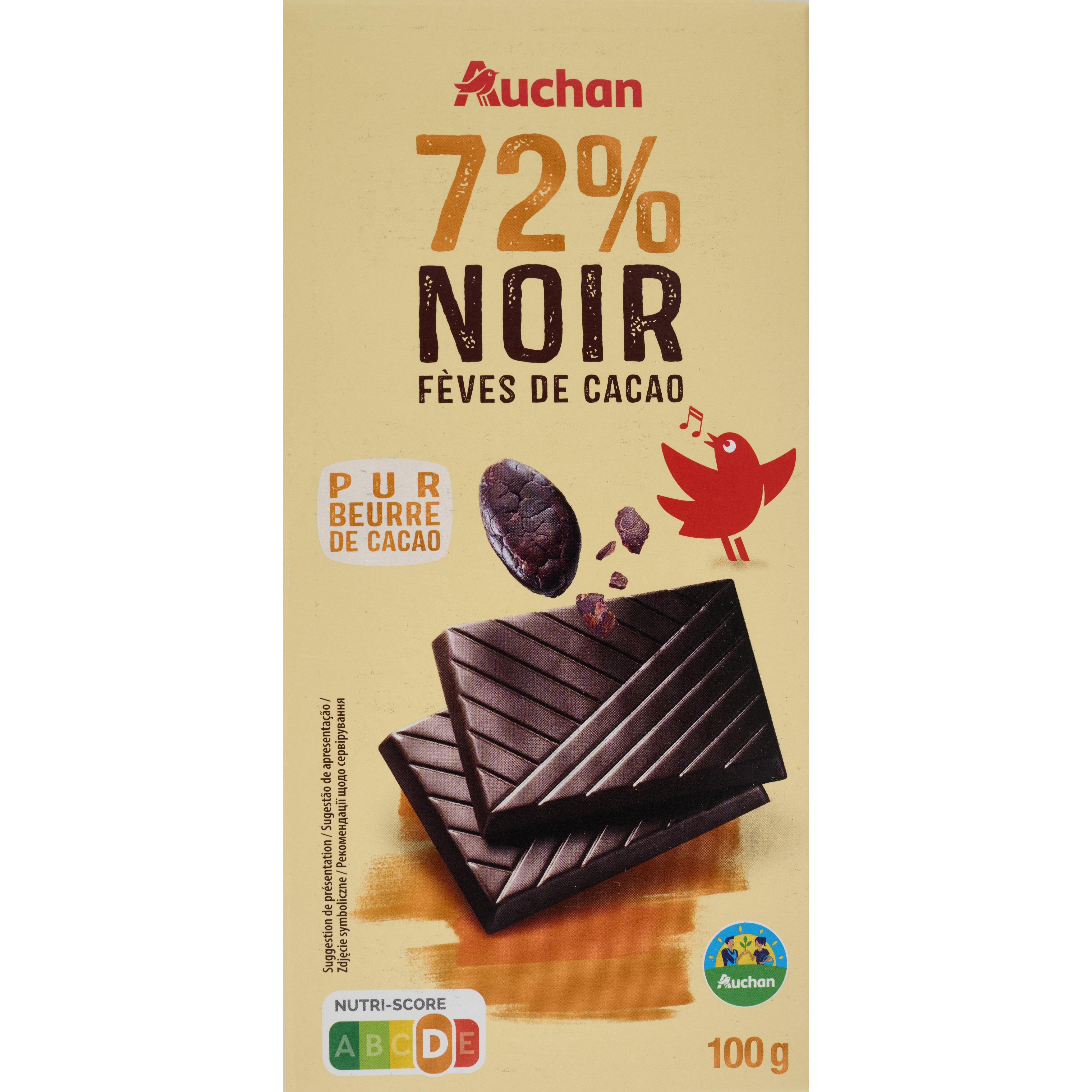 Découvrez le plaisir intense du chocolat noir 72% fèves de cacao AUCHAN. Un chocolat riche en arômes pour une expérience gustative authentique.