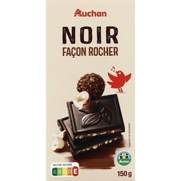 Tablette de chocolat noir façon rocher Auchan Gourmet, fabriquée en France.