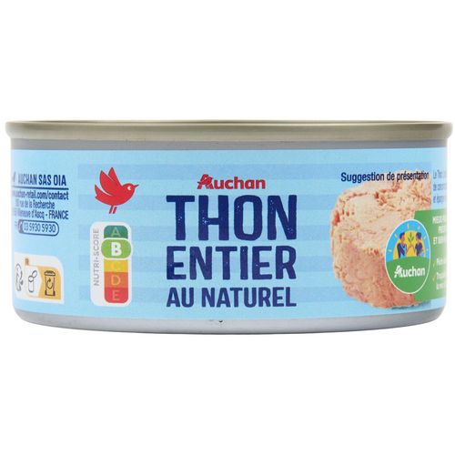 Thon Listao entier au naturel Etiquette 160g Auchan (unitaire)