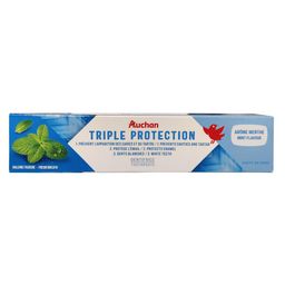 DentifriceTriple protection3 en 11) Prévient l'apparition des caries et du tartre2) Protège l'émail3) Dents blanchesArôme mentheHaleine fraîcheAide à enlever les taches à la surface des dents