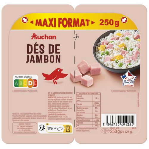 Dés de jambon cuit choix découenné dégraissé