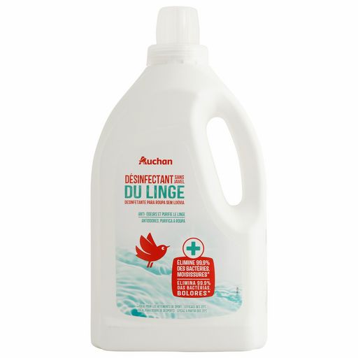 Le linge lavé à basse température n’est pas totalement débarrassé des microbes, des bactéries et des virus qui peuvent survivre et être transférés à d'autres vêtements. Le désinfectant du linge AUCHAN élimine 99.9% des bactéries et des moisissures. Idéal pour tous les textiles, y compris vos vêtements de sport, sa formule détruit efficacement les odeurs tenaces dès 20°C.Utilisez ce désinfectant avec précaution. Avant toute utilisation, lisez l’étiquette et les informations concernant le produit.