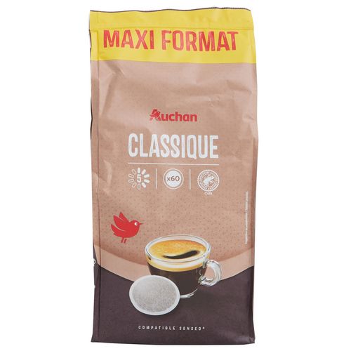 Dosettes souples de café torréfié moulu. Intensité 5/10. Café certifié rainforest alliance.