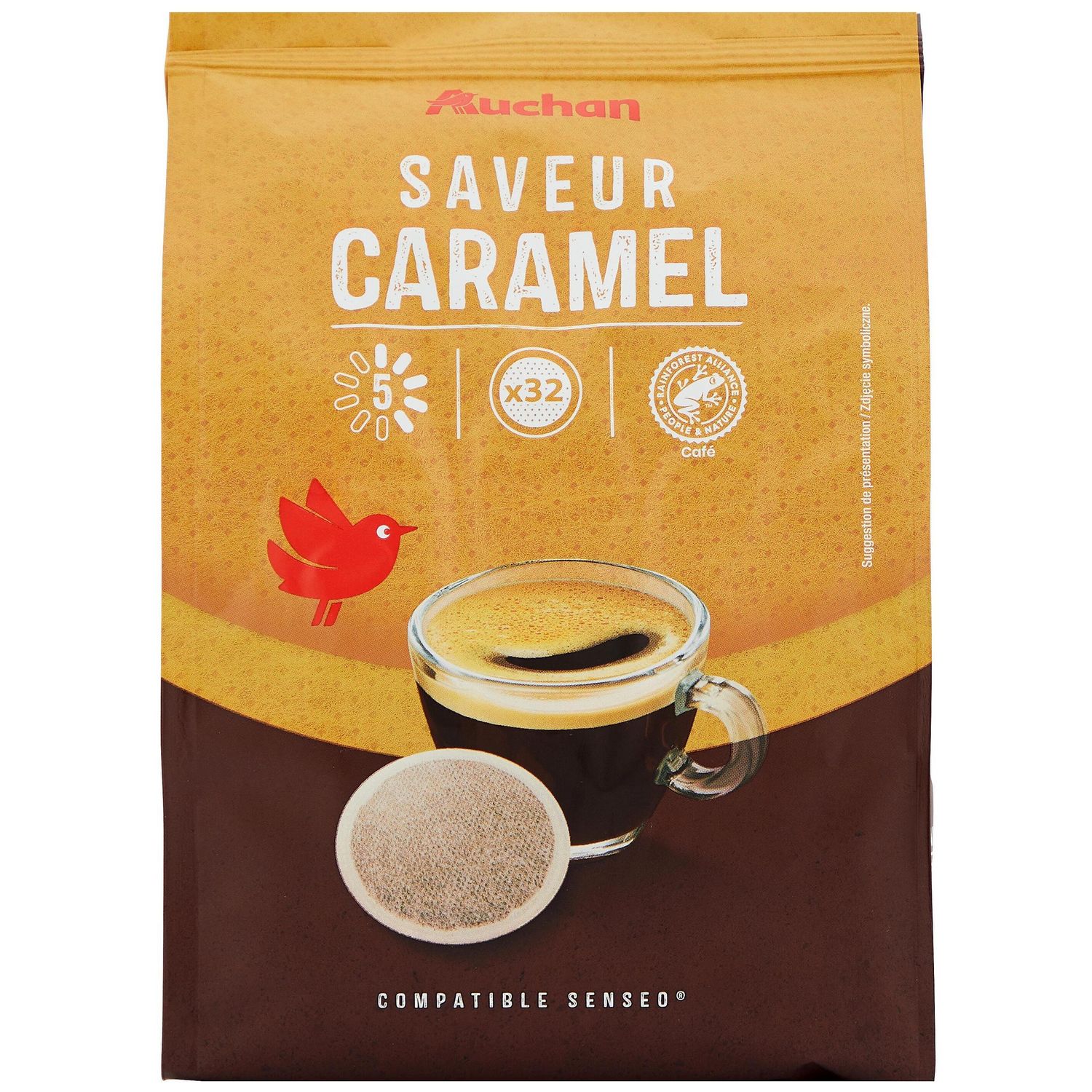 AUCHAN CAFE SAVEUR CARAMEL DOSETTES X32 224G