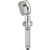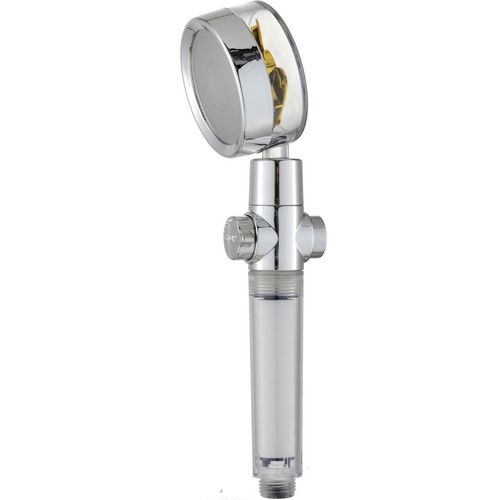 Pommeau de douche chromé et transparent avec une fonction de boutton start and stop et réglage de débit, filtre intégré. Tête rotative à 360°.