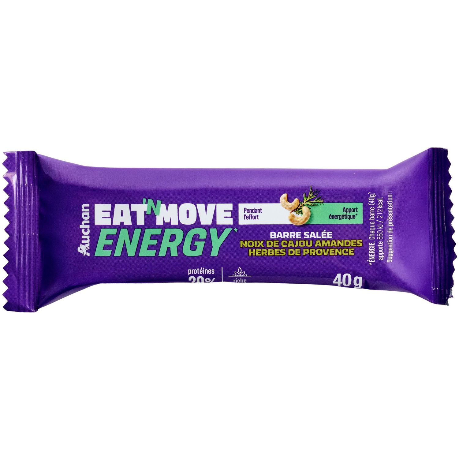 Barre aux noix de cajou et aux herbes de provence. Source de protéines, riche en fibres.