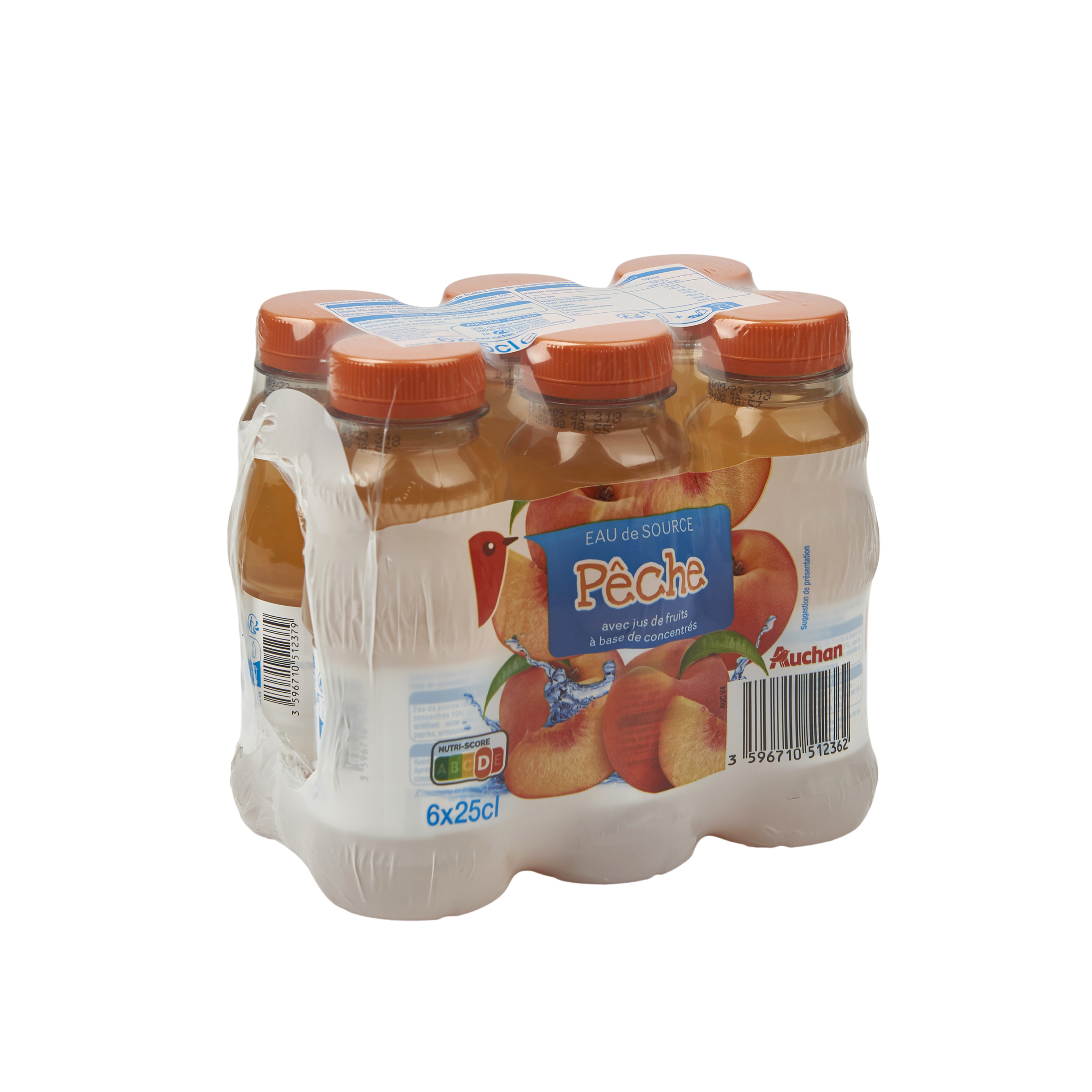 Boisson à base d'eau de source, aux jus de fruits à base de concentrés, aromatisée pêche