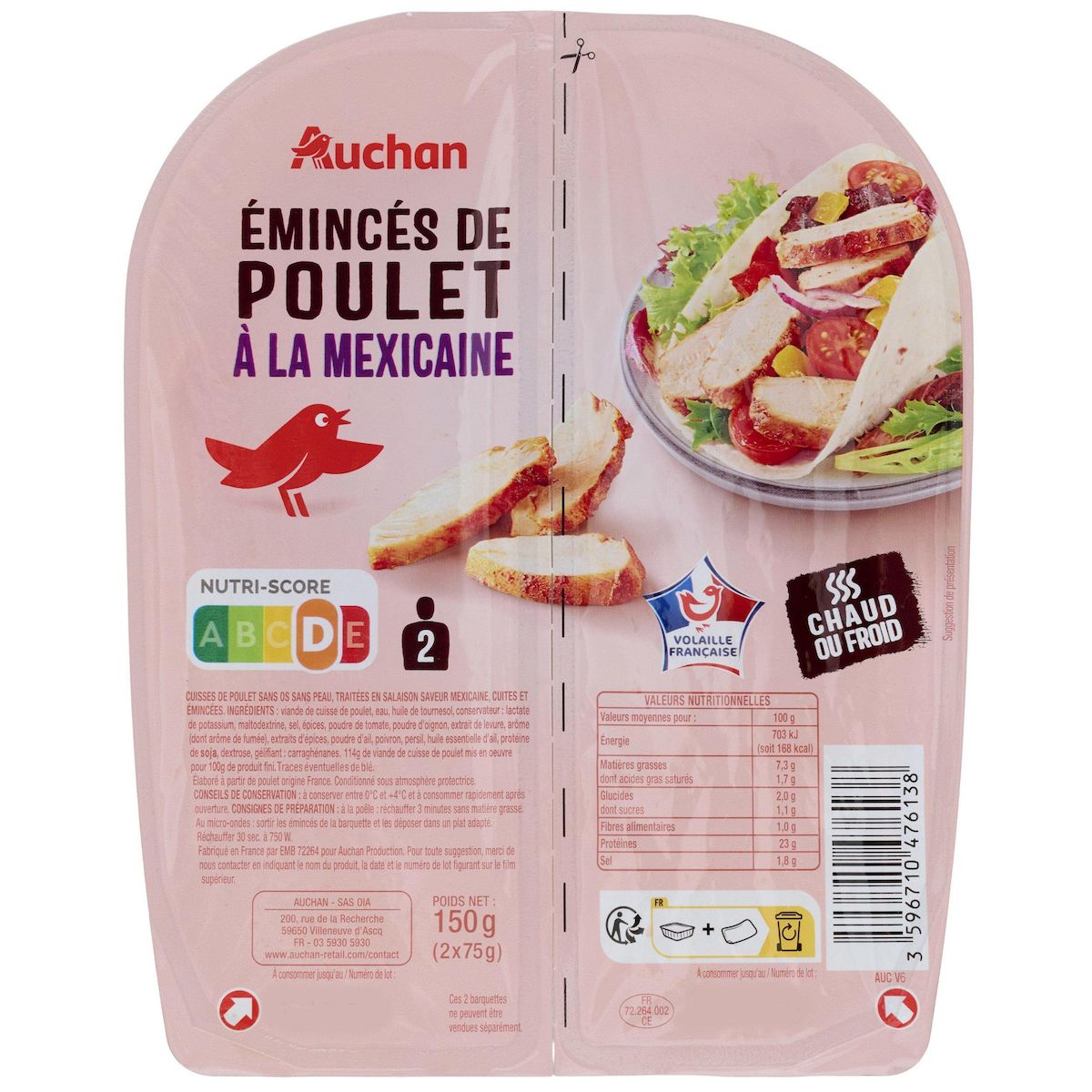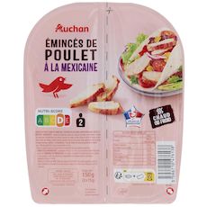 "Des émincés d'aiguillettes de poulet à la mexicaine, moelleux et savoureux. Une barquette sécable pour une consommation à deux ou en plusieurs fois.Une découpe pratique pour agrémenter vos pâtes, vos quiches, vos salades, vos sandwichs. Une aide culinaires gourmande pour des repas faciles et rapides"
