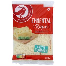 Emmental français râpéFromage à pâte pressée cuite, au lait pasteurisé