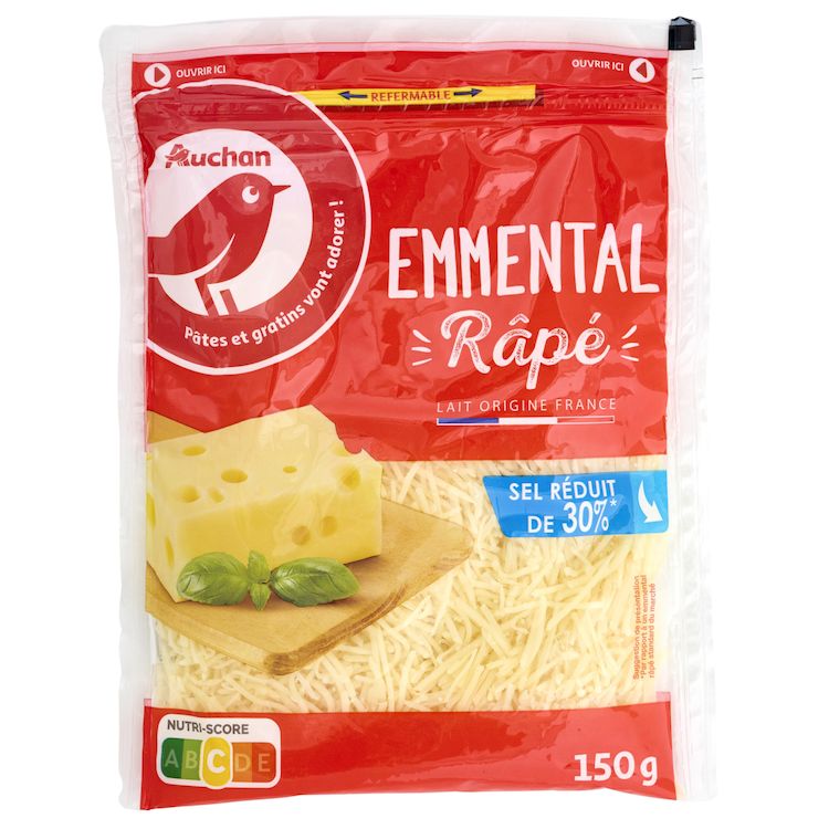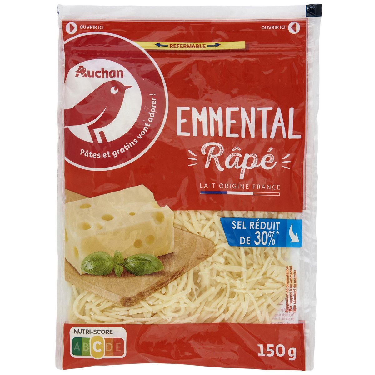 Emmental - Fromage à pâte pressée cuite - à teneur réduite en sel*, râpé*sel réduit de 30% par rapport à un emmental standard du marché