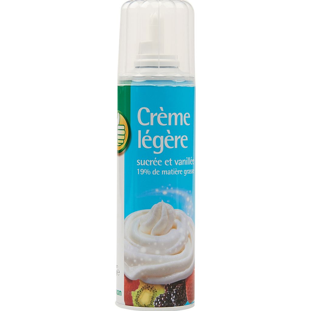 crème légère, sucrée et aromatisée à la vanille, sous pression, stérilisée UHT.