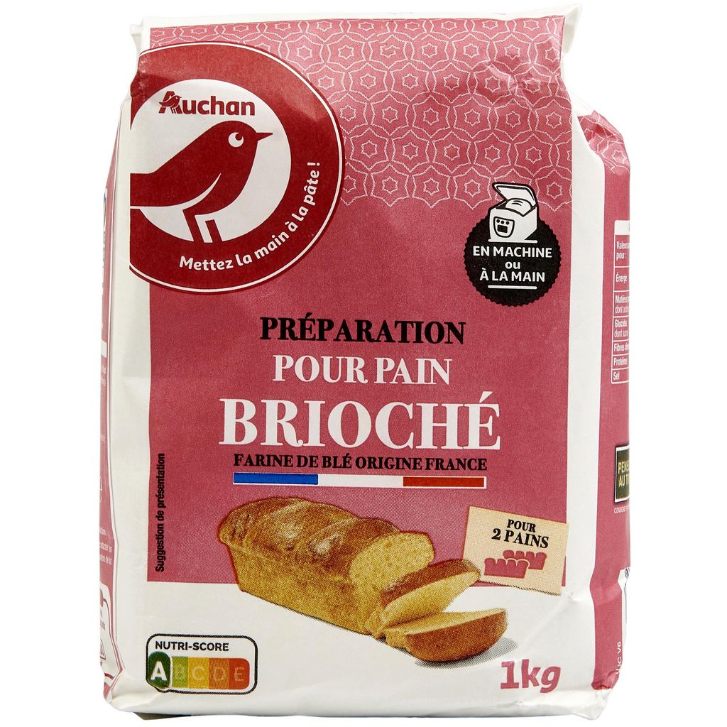 Préparation pour pain brioché avec farine de blé origine France, à utiliser en machine ou à la main.