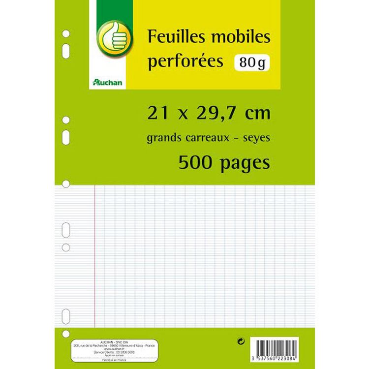 Feuillet mobile perforé 21x29,7cm