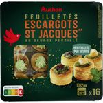 16 feuilletés pur beurre garnis d'escargots et de noix de Saint Jacques** et d'une farce au beurre ail et persil, décongelés***