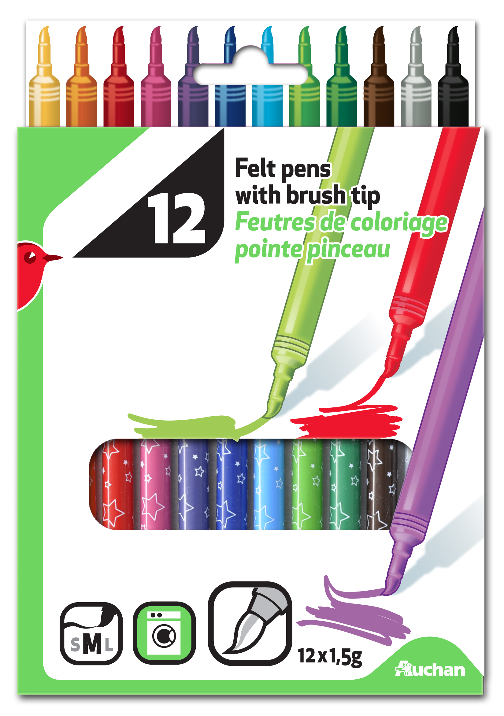 Pointe moyenne. Couleurs vives. Encre lavable facilement. Fabriqué en Italie