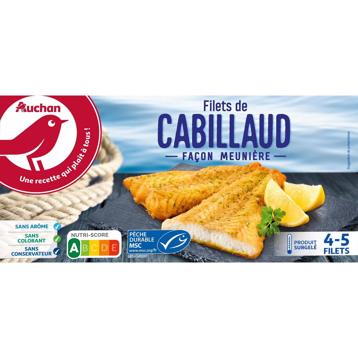 Filets de cabillaud qualité sans arête*, MSC**, meunière, préfrits, surgelés