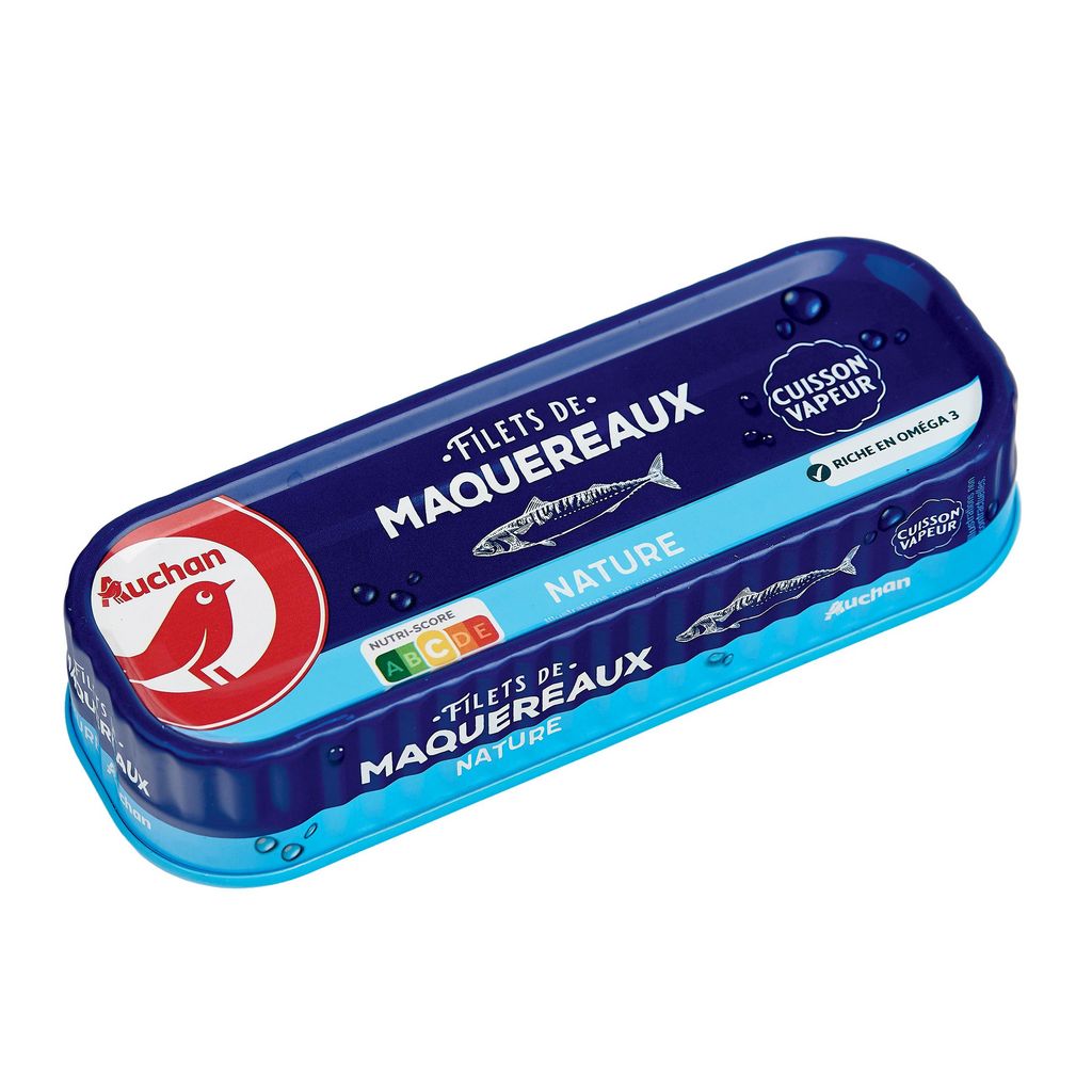 Emballage très pratique pas besoin d'ouvre boîtes, boîte bien présentée, filets de maquereaux bien rangés, chair juteuse, très bon goût de poissons cuisinés enrobés d'une bonne sauce tomate cerise et parsemés de quelques herbes du terroir.... Ils n'ont pas fait un pli. Merci beaucoup Auchan.