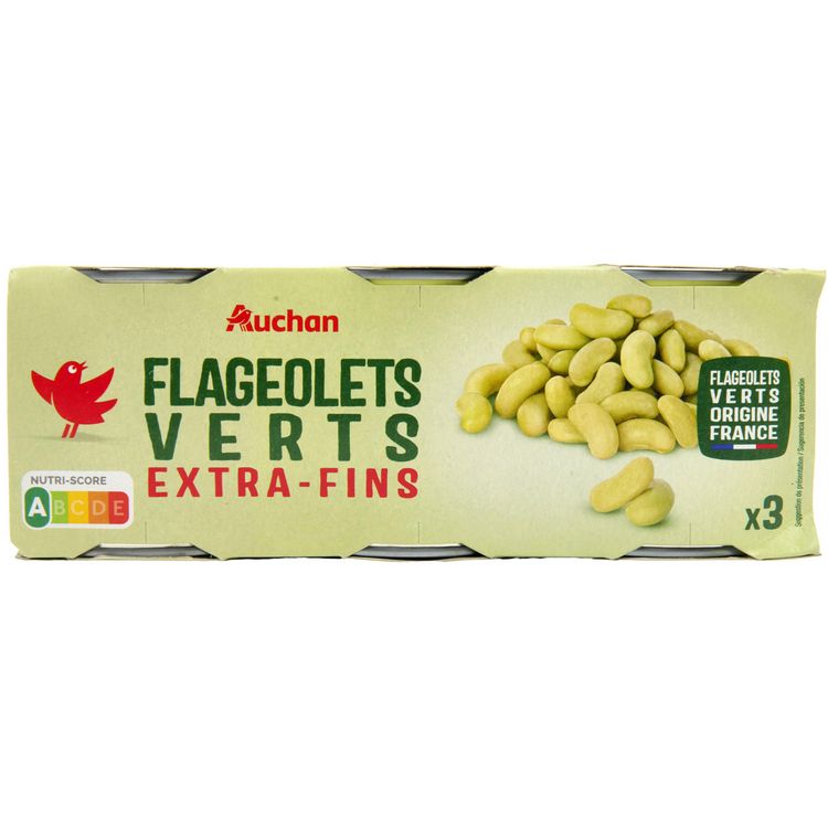 AUCHAN FLAGEOLETS VERTS EXTRA FINS BOITE 1/4 3X130G