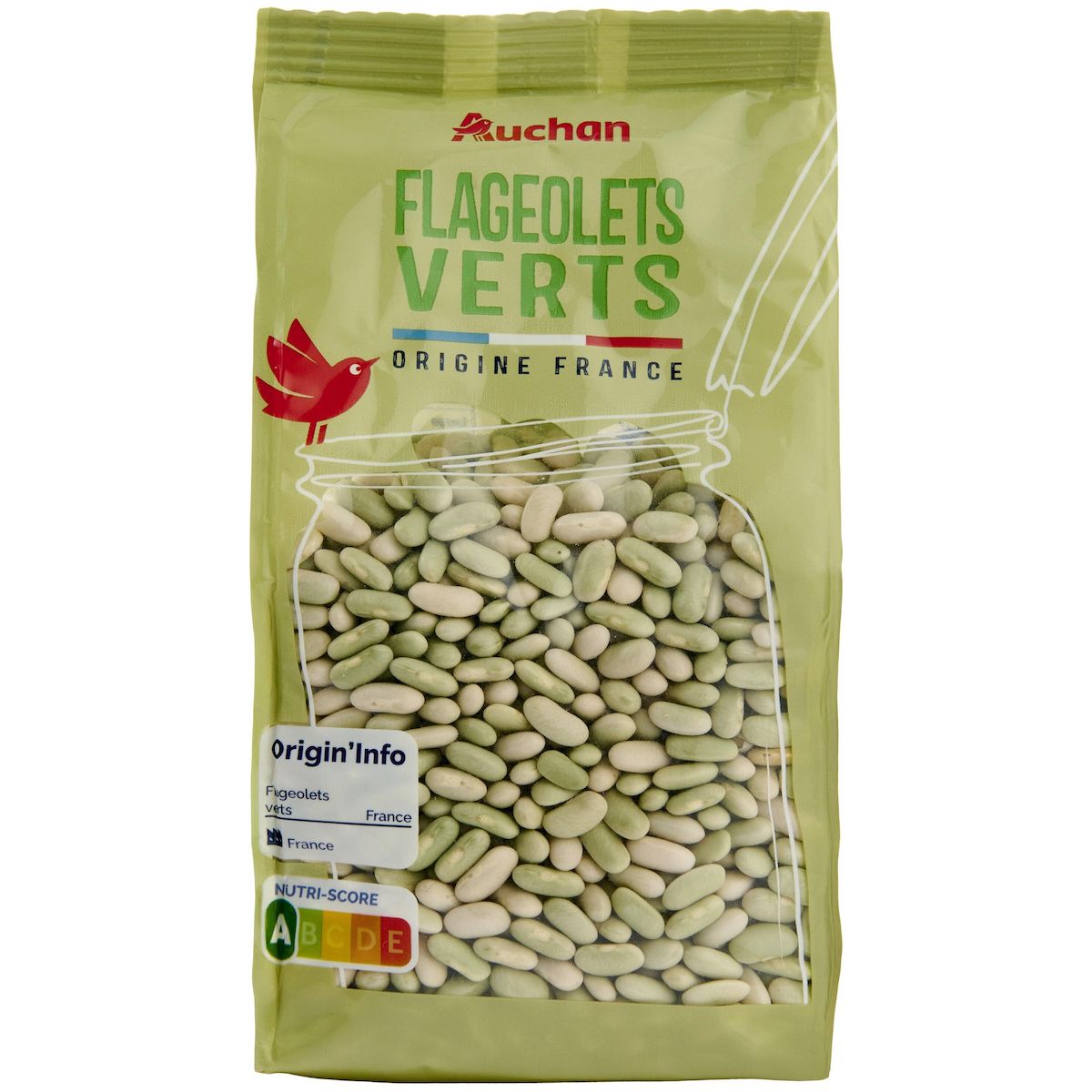 Ingrédients : Flageolets verts.Traces éventuelles de fruits à coque, arachides, graines de sésame et céréales contenant du gluten.