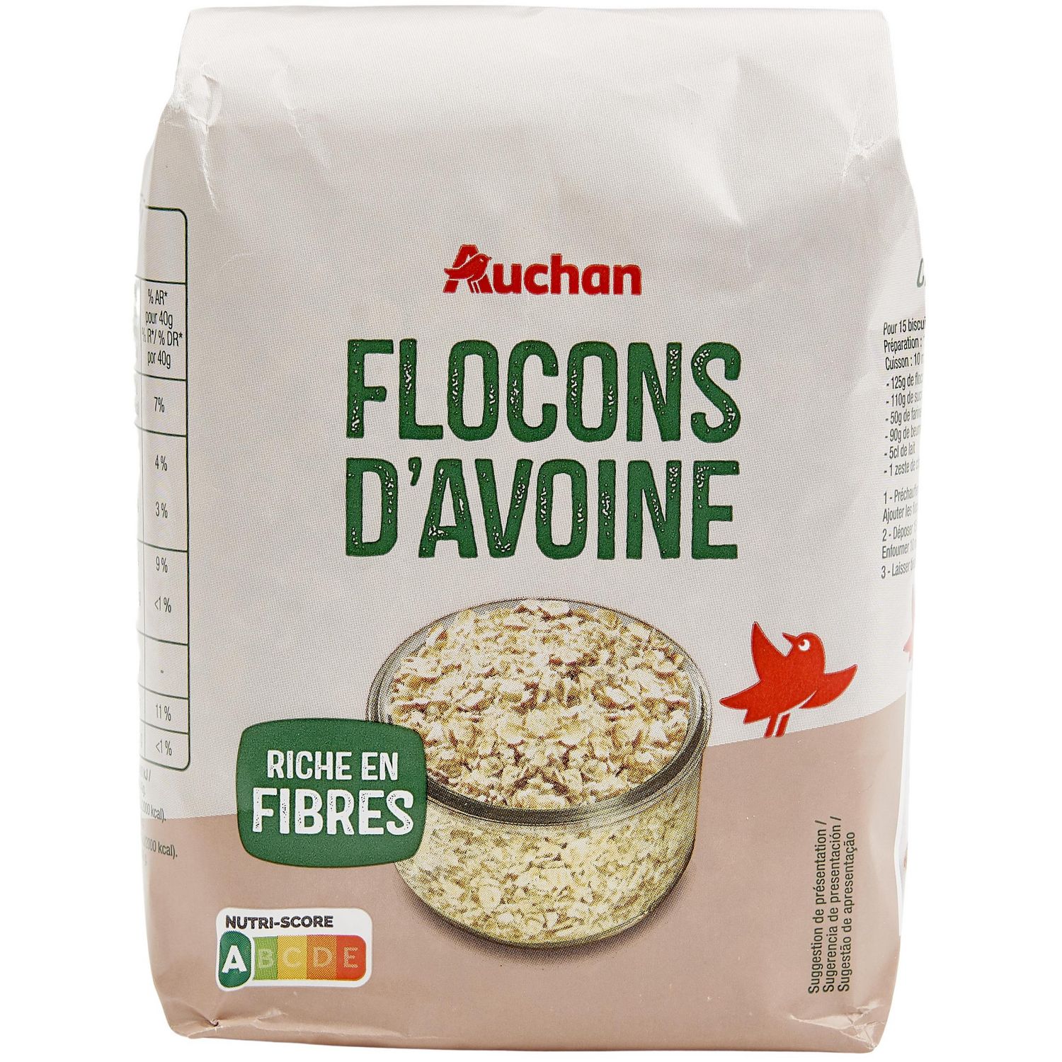 Ingrédients : flocons d’AVOINE complète 100%. Traces éventuelles d'autres céréales contenant du gluten, d'arachides, de fruits à coque, de soja, de lait, de graines de sésame, de moutarde et de lupin.
