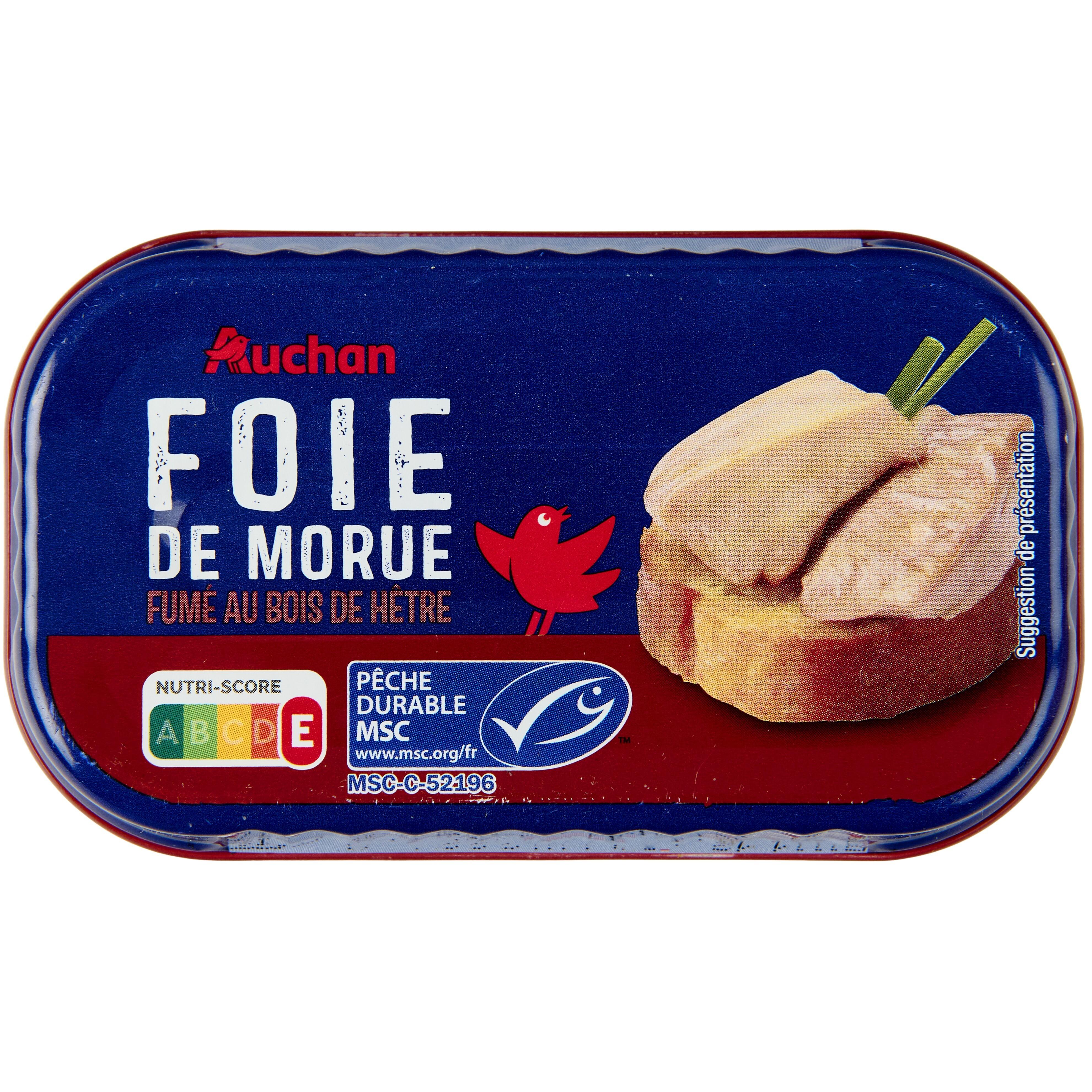 Ingrédients : Foie de morue ( Gadus morhua ) (POISSON) fumé 99%, sel. L'huile contenue dans la boite est uniquement l'huile exsudée du foie lors de la stérilisation. Pêché en Océan Atlantique Nord-Est