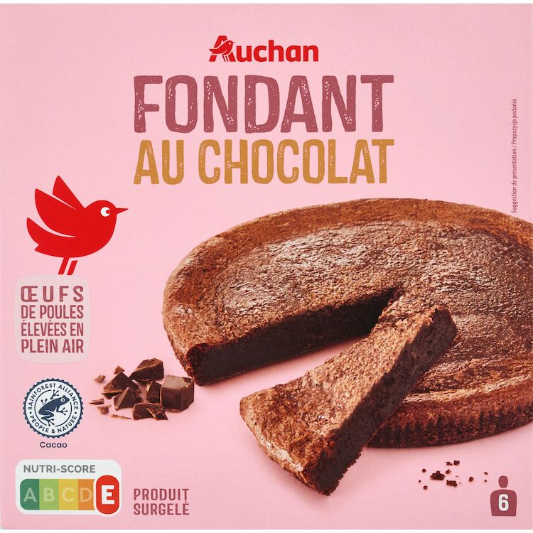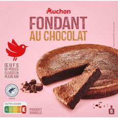 au four:Préchauffez votre four à 180°C, thermostat 6.Dès la sortie du congélateur du fondant au chocolat sortez le de son étui et ôtez le sachet transparent.Placez le dans son moule sur une grille placée à mi hauteur du four,Laissez le réchauffer au four traditionnel : 13 minutes Laissez le reposer 30 minutes à température ambiante avant de déguster..au micro-ondes:Sortez le fondant de son étui et ôtez le film plastique Déposez-le, dans son moule, sur le plateau du four micro-ondesLaisser réchauffer 1 minute 30 (puissance restituée du four : 900w) Laissez-le reposer 30 minutes dans son moule avant de le déguster