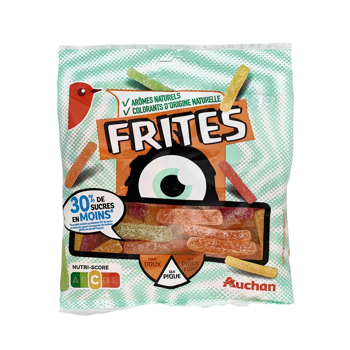 Ingrédients : Sucre, fibre soluble de glucose, sirop de glucose, eau, gélatine, acidifiant : acide citrique, agent d'enrobage : cire de carnauba, arômes naturels, arôme naturel de citron avec autres arômes naturels, colorants : anthocyanes, extrait de paprika, curcumine, concentré colorant de spiruline et de carthame amidon de BLÉ.